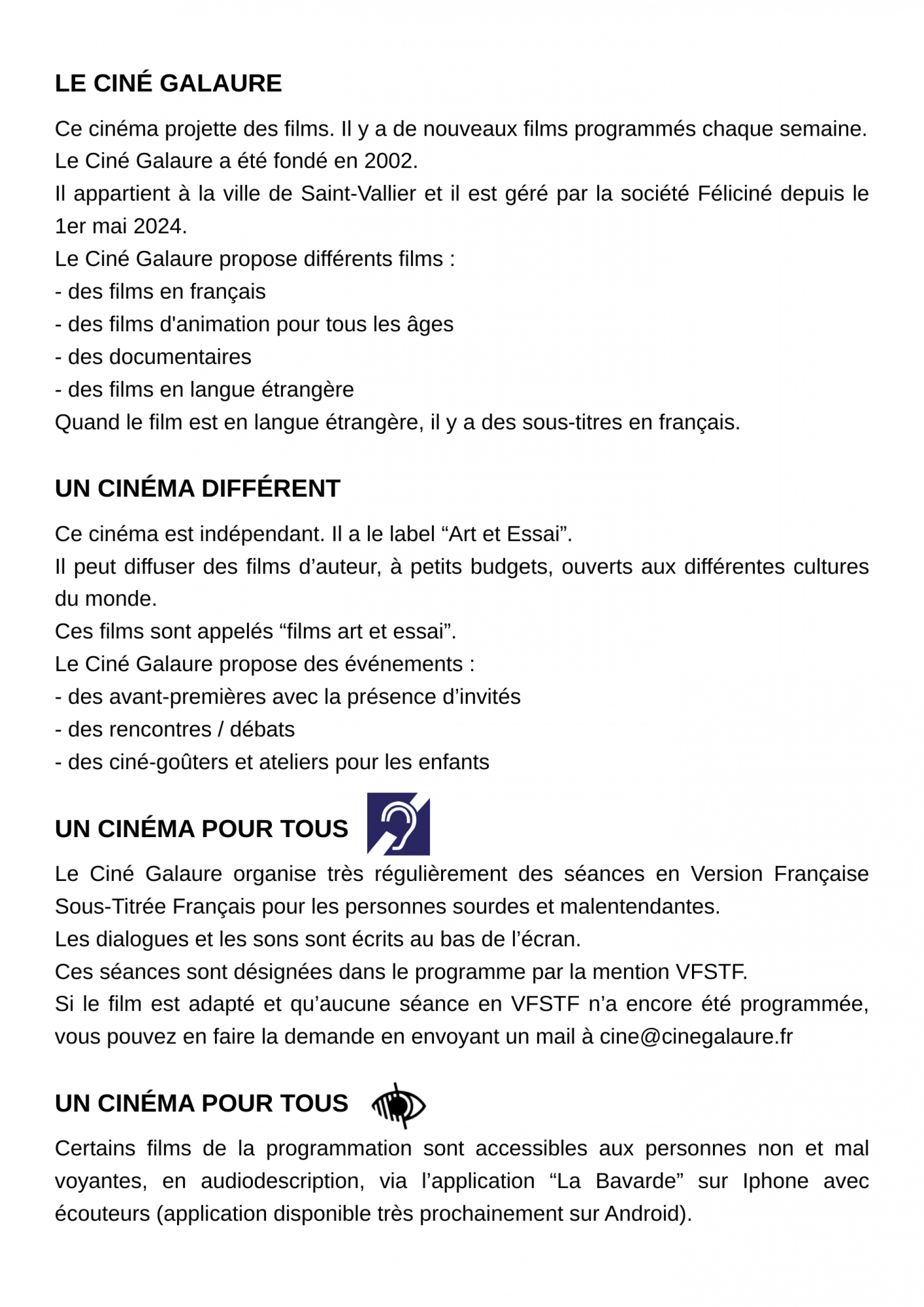 Ciné Galaure - 2 rue des malles, 26240 Saint-Vallier | Mentions légales | Contact | Tel : 04.75.23.07.26